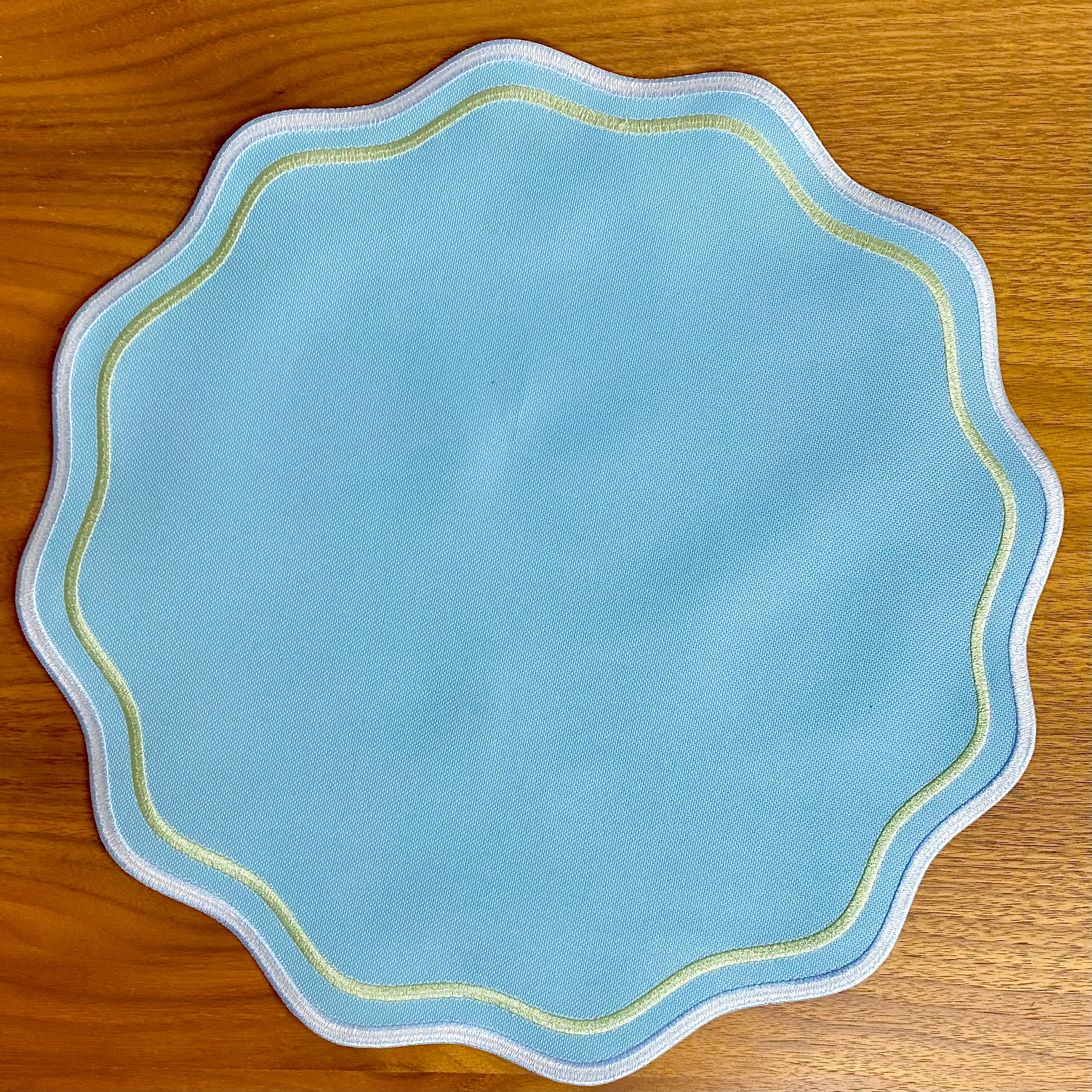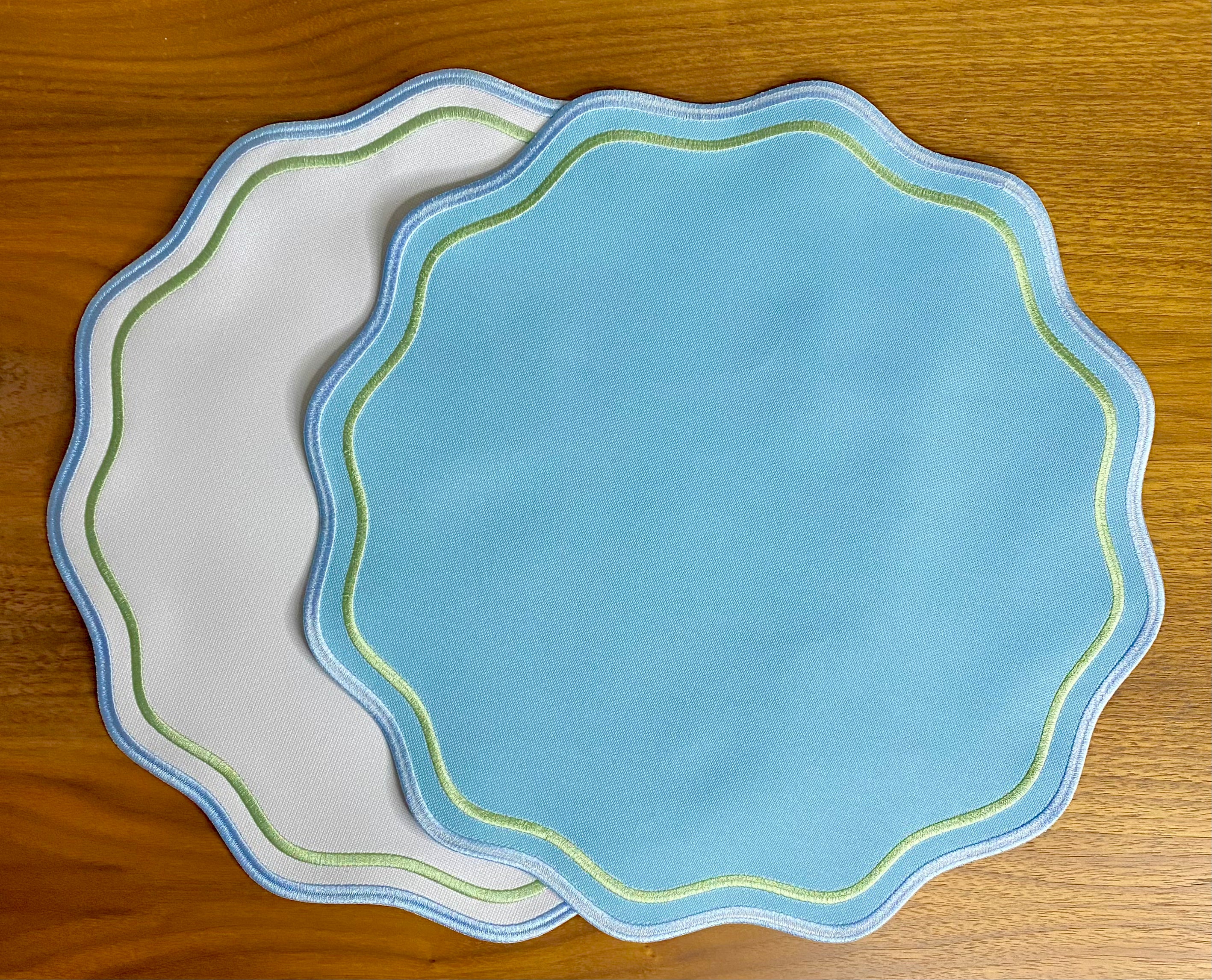 Bordado em 2 cores em tons delicados, azul e verde, este jogo americano combina com diversos estilos de decoração, compondo mesas mais sofisticadas ou mais descontraídas. Fica lindo com louças estampadas.