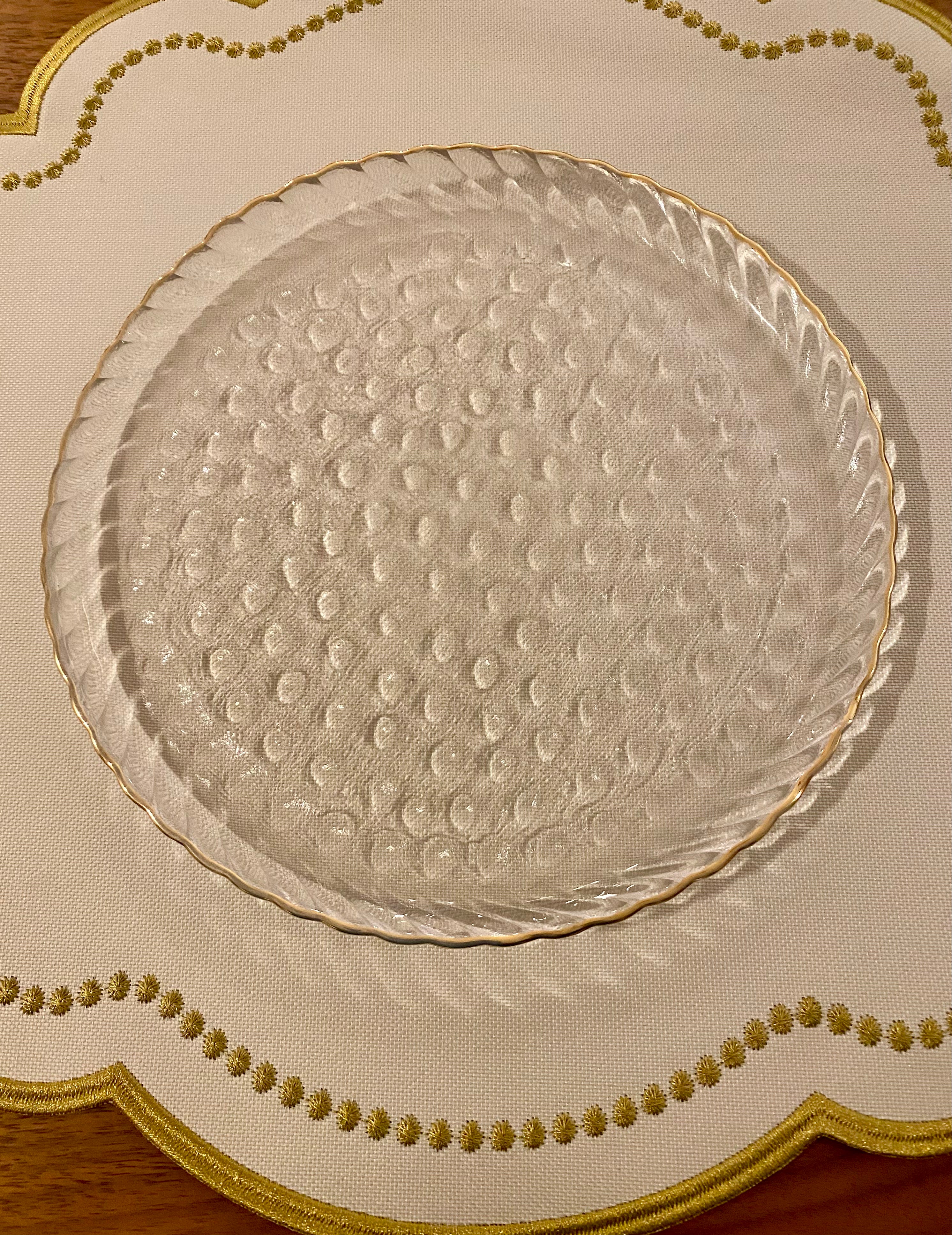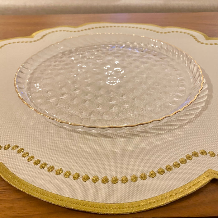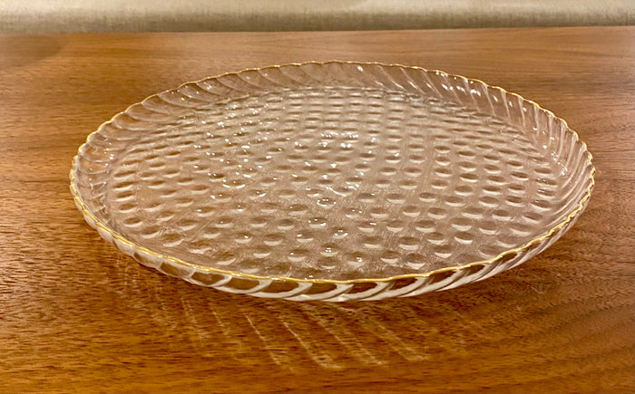 Eis as peças que faltavam para dar um toque especialíssimo à sua mesa. Os pratos de sobremesa de vidro martelado com bordas douradas combinam a delicadeza do acabamento artesanal com a beleza atemporal dos filetes dourados, criando peças únicas e sofisticadas. São pratos de vidro com design moderno que elevarão a categoria de seu evento, seja um jantar em família ou uma ocasião mais formal.