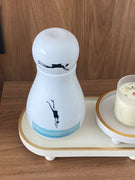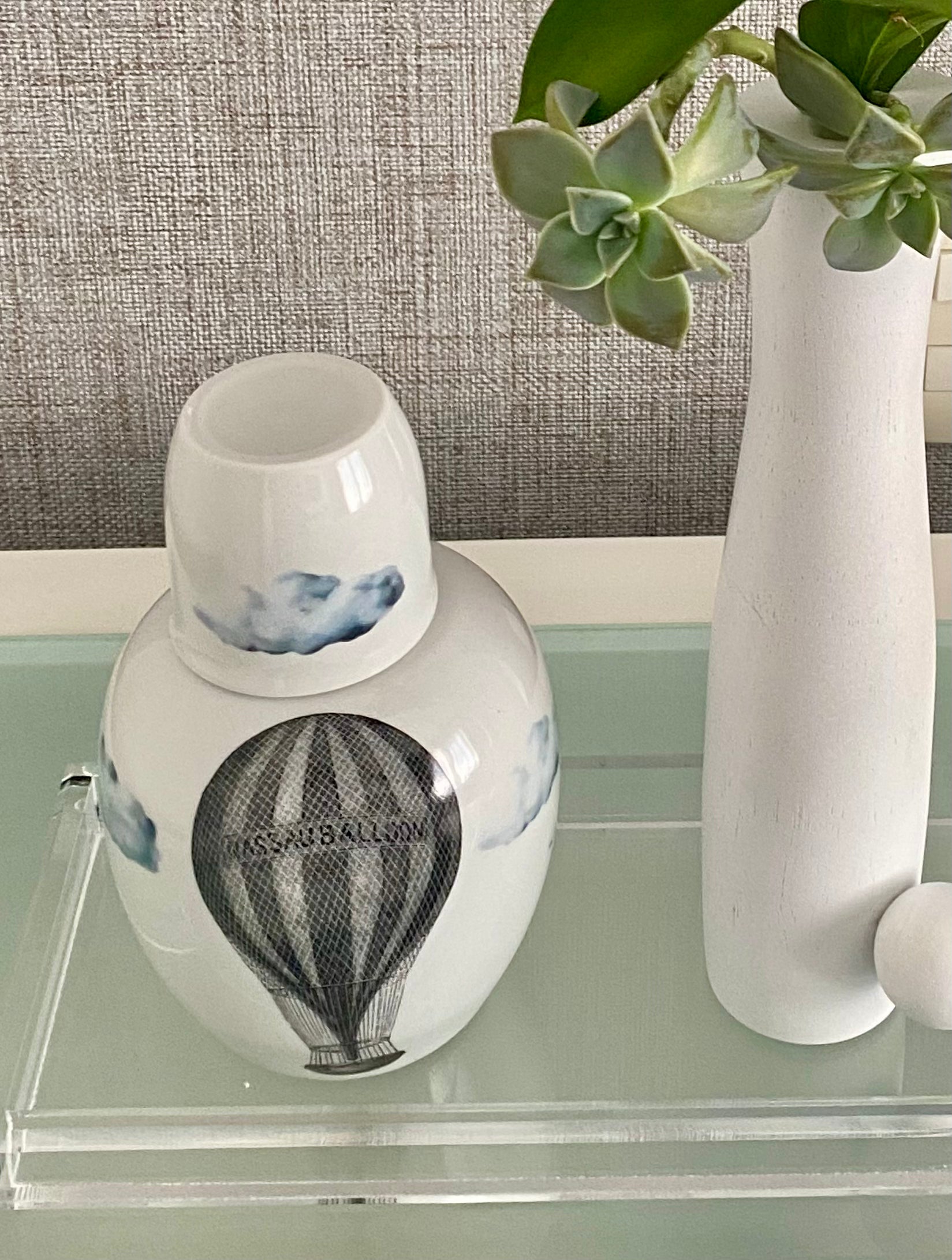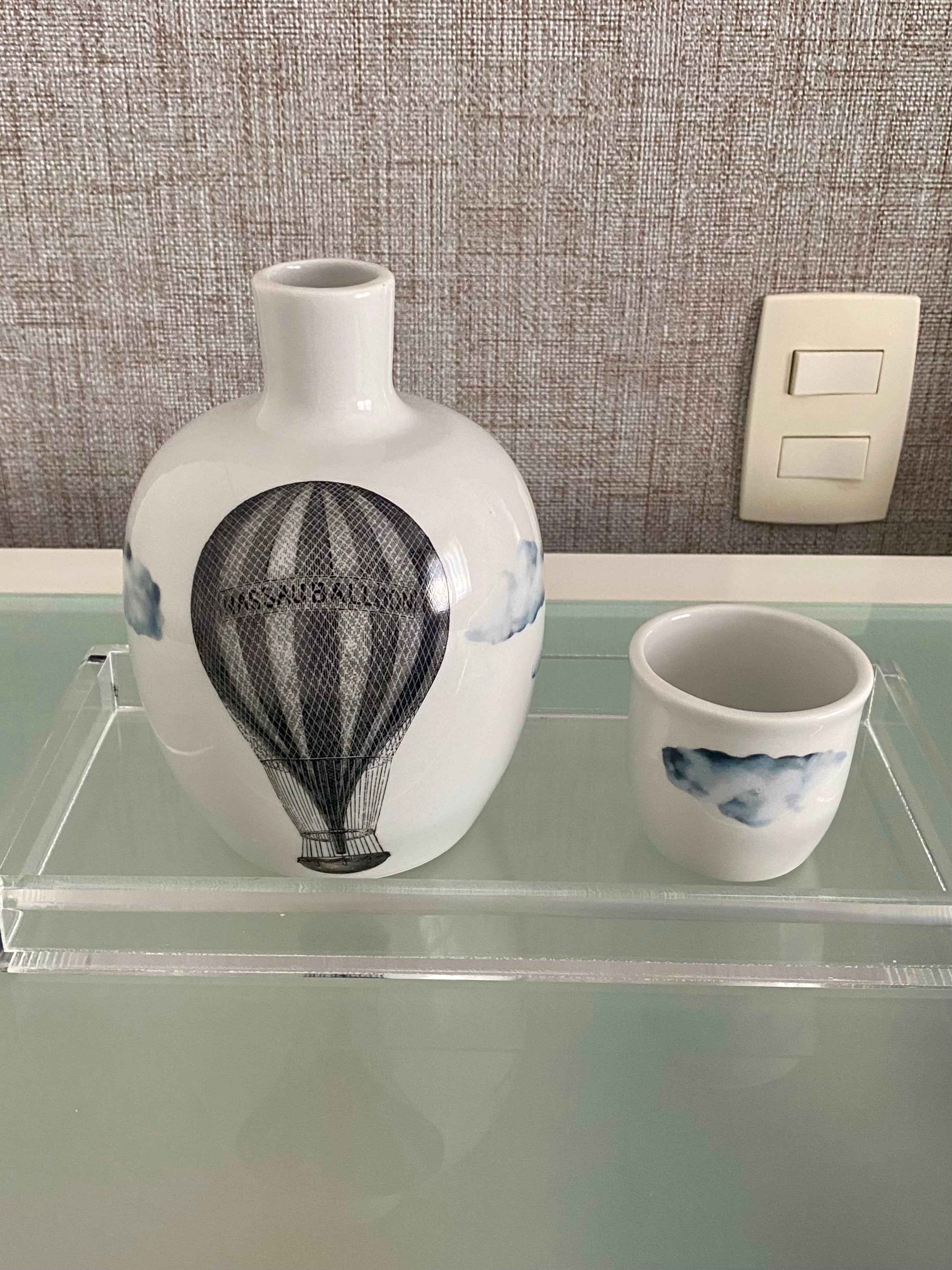 Com uma ilustração delicada e lúdica, a moringa Balão une criatividade e funcionalidade em uma mesma peça, característica que é marca registrada do artista.