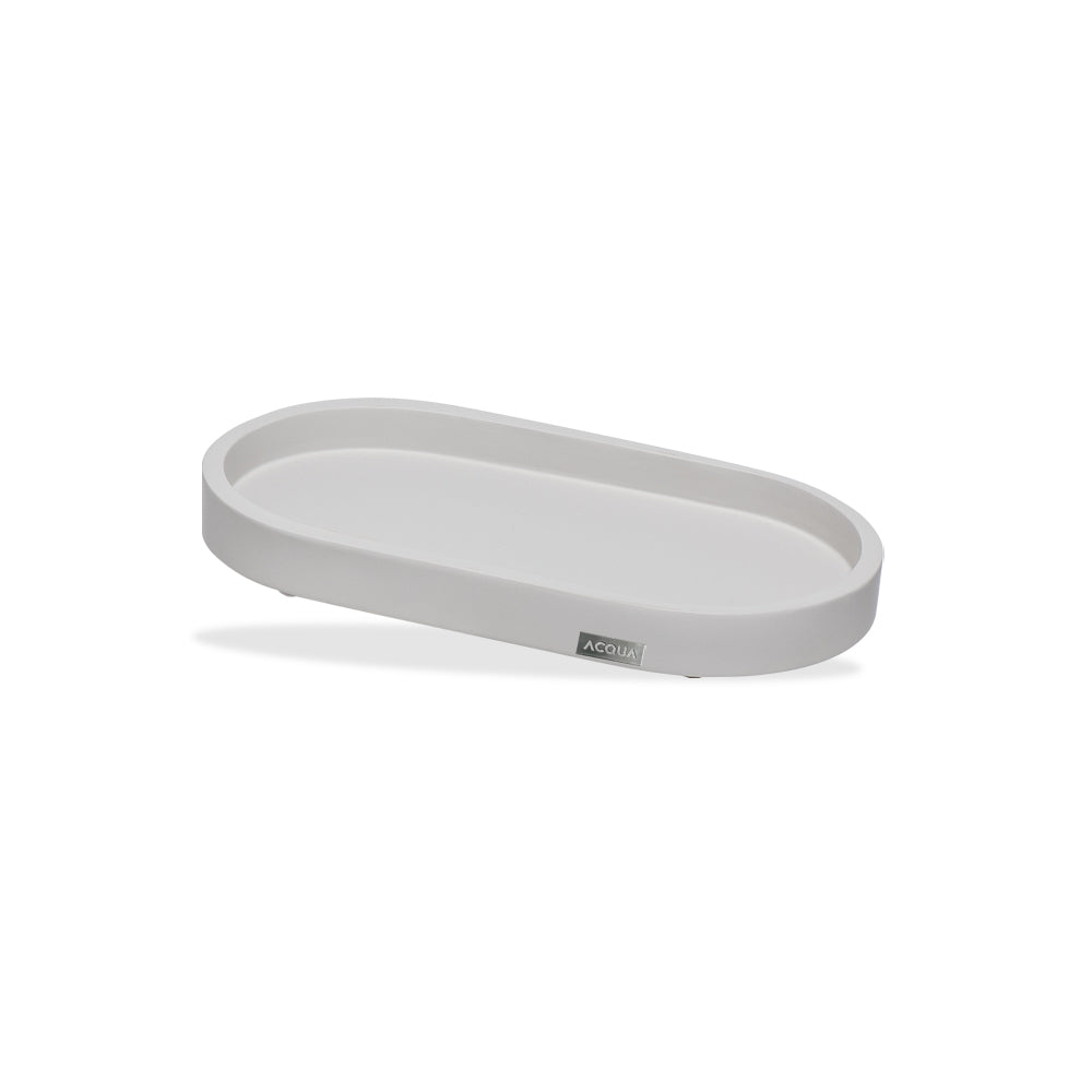 O toque final de sofisticação é dado pela Bandeja Decorativa em Resina com acabamento fosco na cor areia, que organiza as peças com requinte.