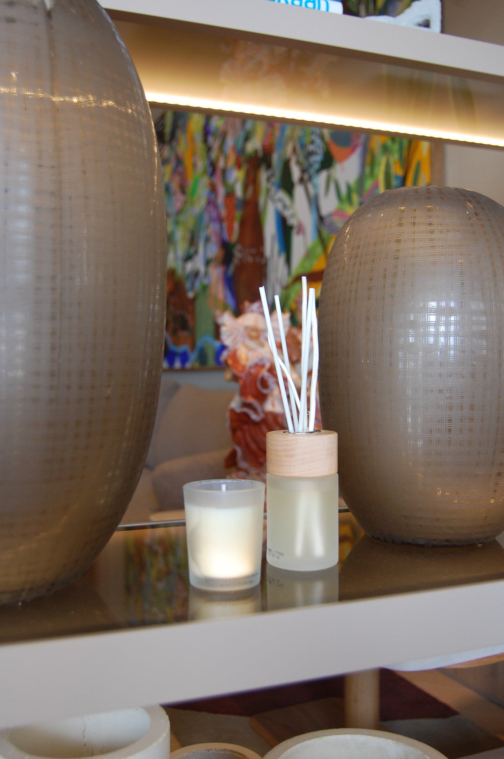 • Material: vela: frasco em vidro, cera vegetal / difusor: frasco em vidro e varetas em rattan