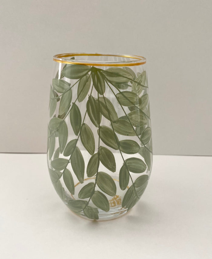 Lindo, o copo Dubai Veneza será motivo de encantamento à mesa. Com ramos de folhas delicadas, ficou perfeito pintado (à mão livre, é claro) na cor verde celadon.