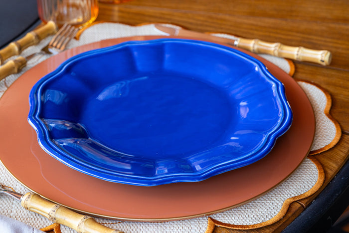 Feito e pintado à mão com a técnica de esmalte reativo, o prato raso da linha Casual é leve, tem cor vibrante, brilho encantador e design requintado. Vai ser ponto focal na sua mesa posta.