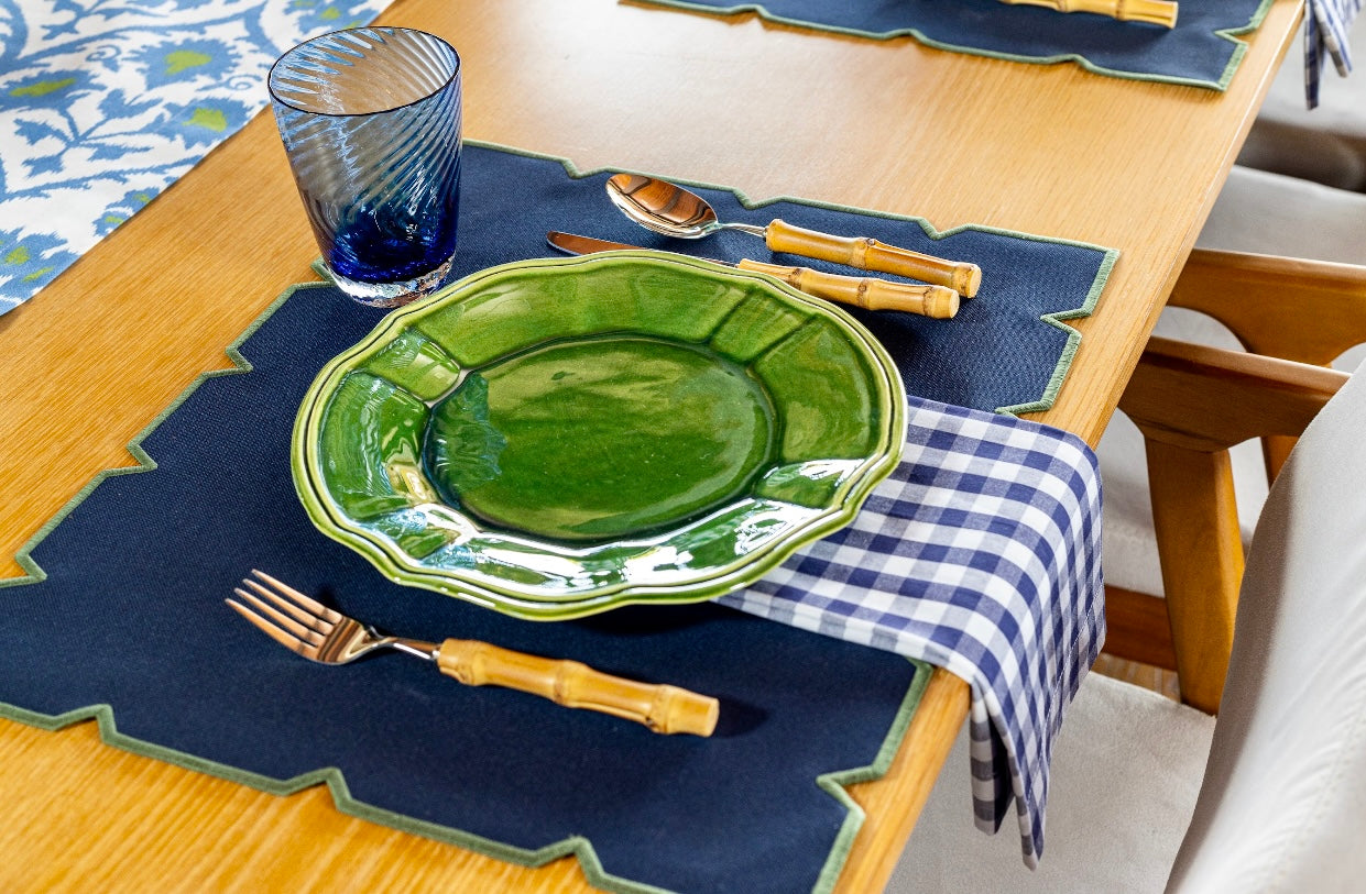 Feitos e pintados à mão os pratos rasos da linha Casual são leves, têm cor vibrante, brilho encantador e design requintado. Vai ser ponto focal na sua mesa posta.