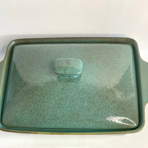 TRAVESSA DE CERÂMICA VERDE COM TAMPA
