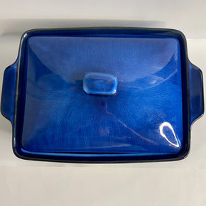 TRAVESSA DE CERÂMICA AZUL COM TAMPA