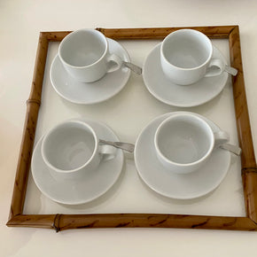 KIT 4 XÍCARAS DE CHÁ COM PIRES, EM CERÂMICA, LINHA BOTANIQUE