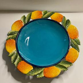 BOWL PARA SERVIR ZANATTA CASA - AZUL COM PEZINHOS DE LARANJA