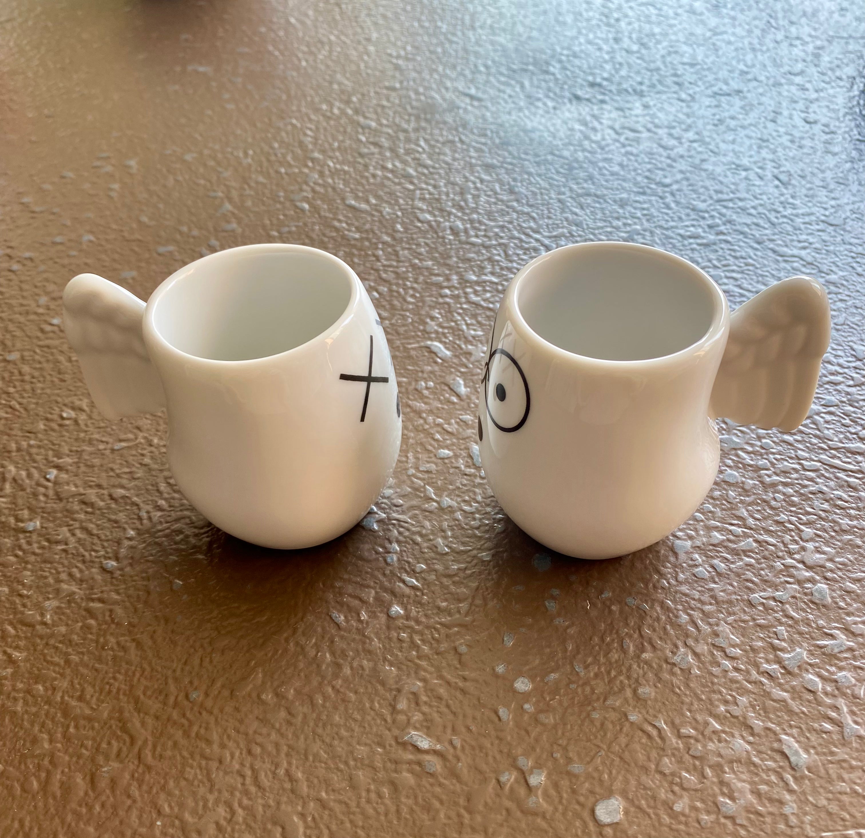 Com anjinhos que têm, além de asas, carinha e bumbum, esse par de xícaras é puro charme!