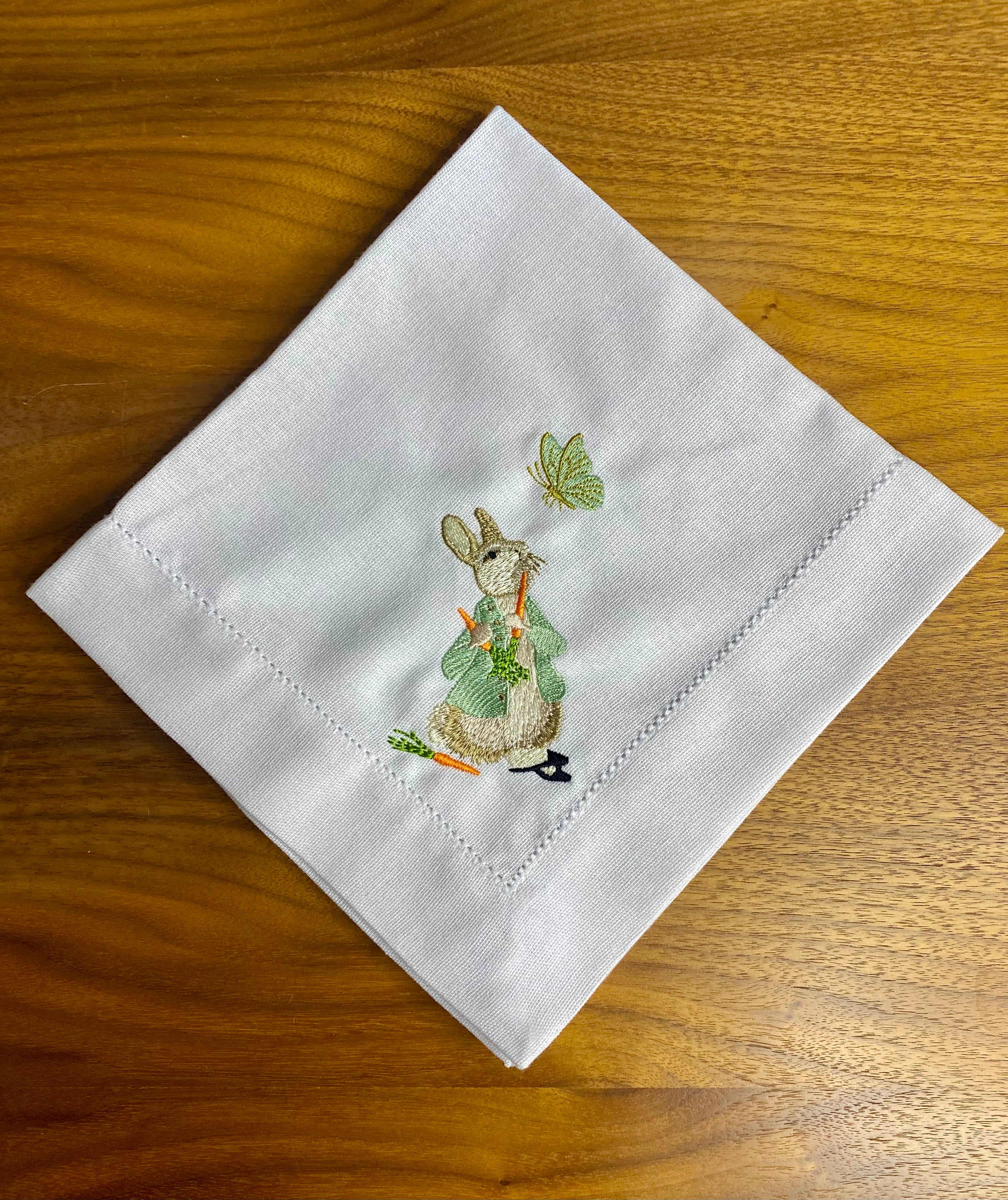 Com um gracioso coelho bordado em uma das laterais, o guardanapo branco em linho misto, vai fazer a diferença na mesa posta de Páscoa. Tem o barrado com acabamento em ponto ajour.