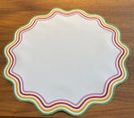 Muito requintado, esse jogo americano tem contorno quádruplo bordado em degradê azul. Veste a mesa com elegância em ocasiões especiais ou cotidianas.