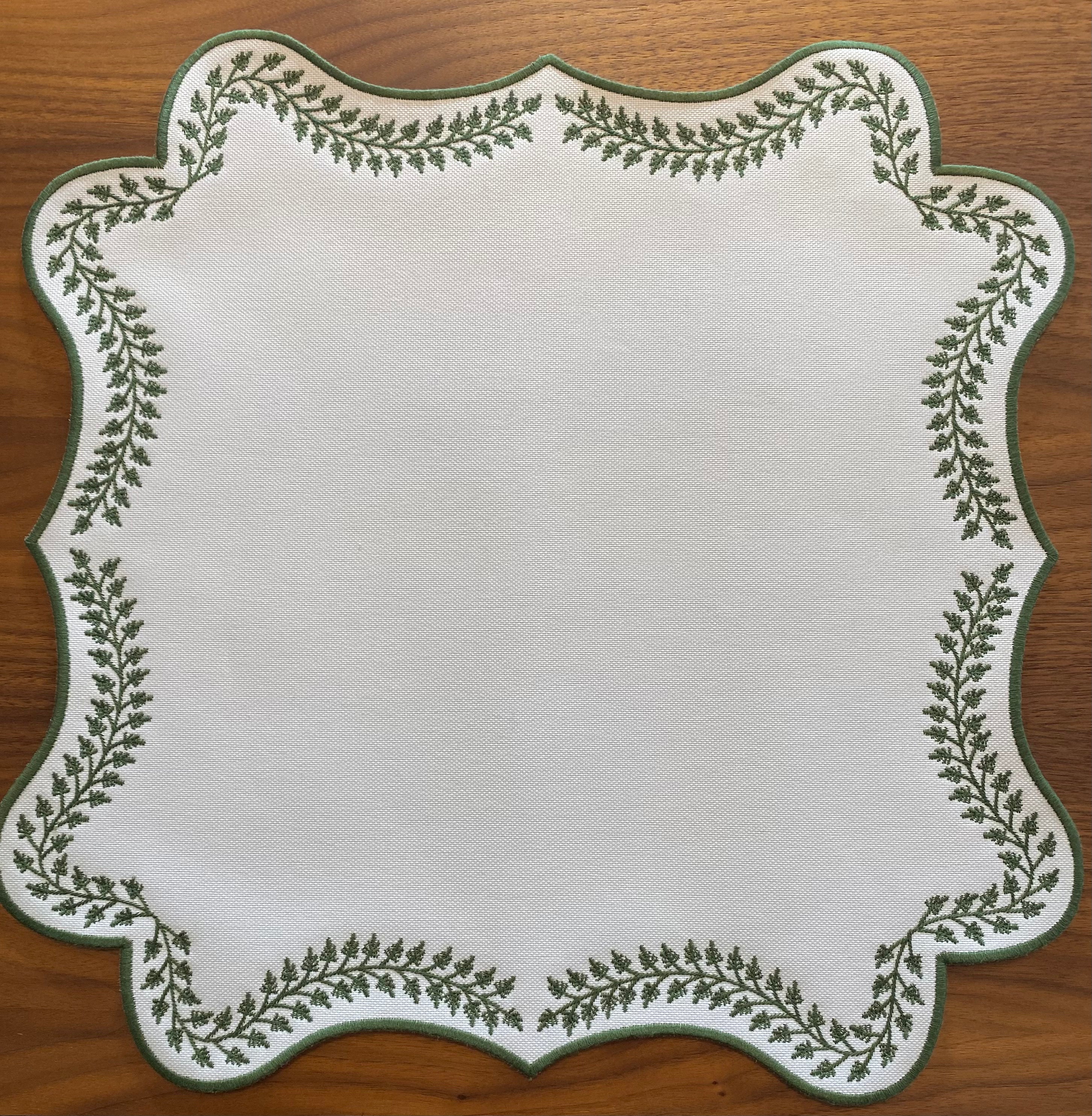 Lugar americano com rico e exuberante bordado com ramos de hera. É a escolha perfeita para que busca adicionar um toque de sofisticação às refeições.