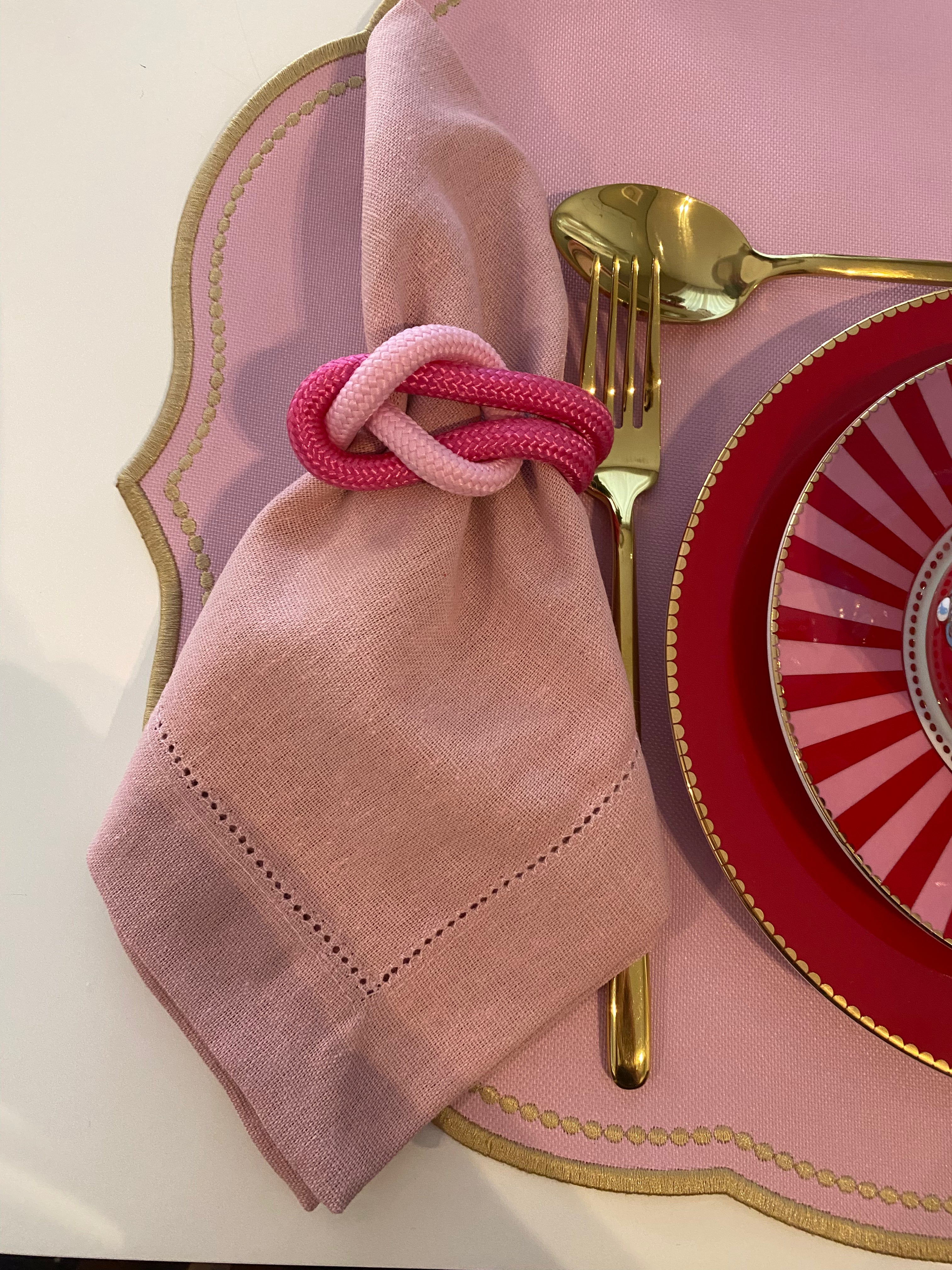 Sugestão: usar com guardanapo de linho misto branco com anel de guardanapo em 2 tons de rosa.