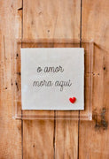 Além das palavras motivacionais, impressas em vidro, a obra é executada com fundo espatulado, acrescentado textura e movimento ao quadro.