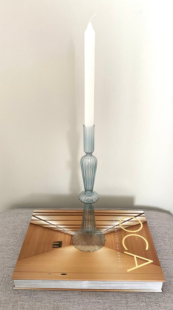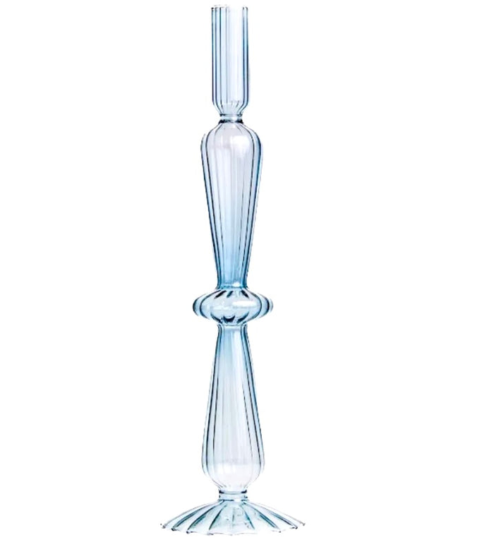 CASTIÇAL EM VIDRO CANELADO AZUL