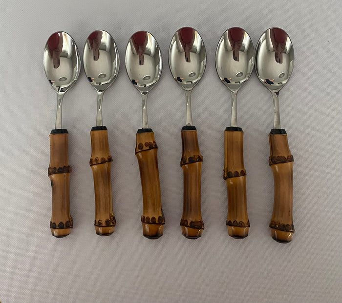 KIT 6 COLHERES DE CAFÉ BAMBU NATURAL CARBONIZADO