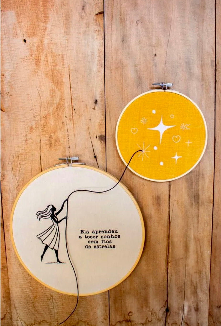 Bastidor Duplo Bordado "Ela Aprendeu a Tecer Sonhos com Fios de Estrelas" | Arte Têxtil Mística A Magia das Linhas: Como o Bordado Transforma a Poesia em Ponto O Bastidor...