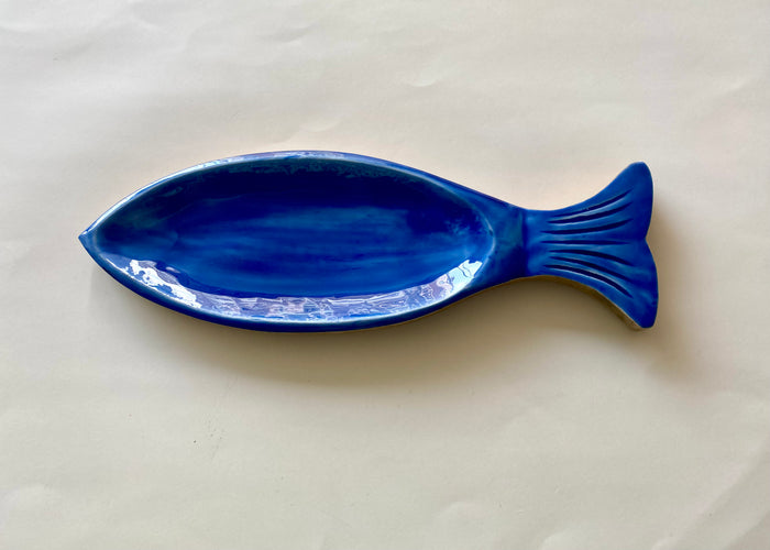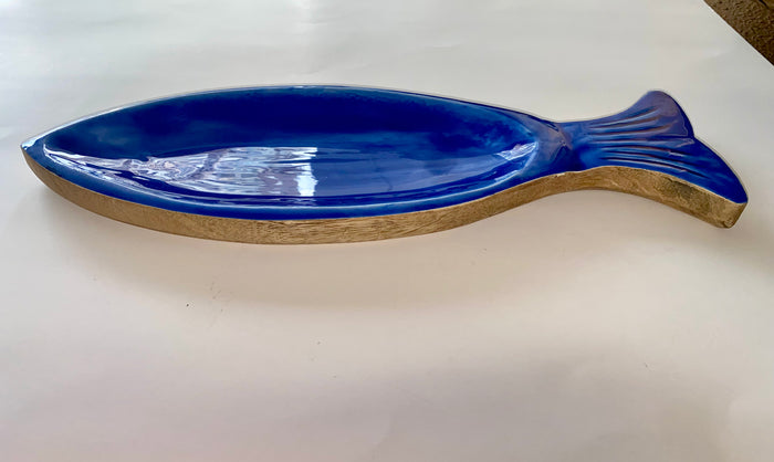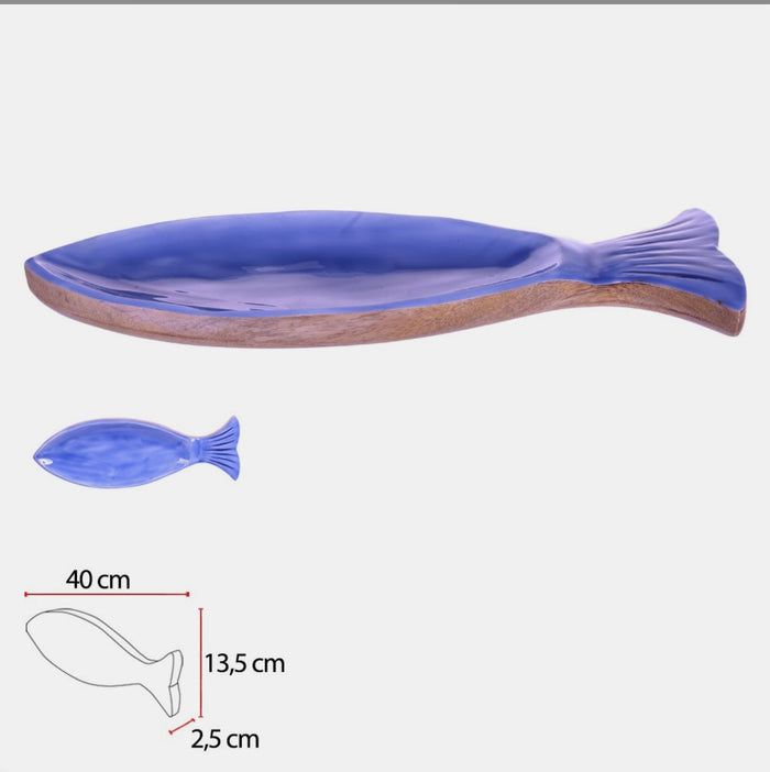 ENFEITE PEIXE BASE MADEIRA COR AZUL