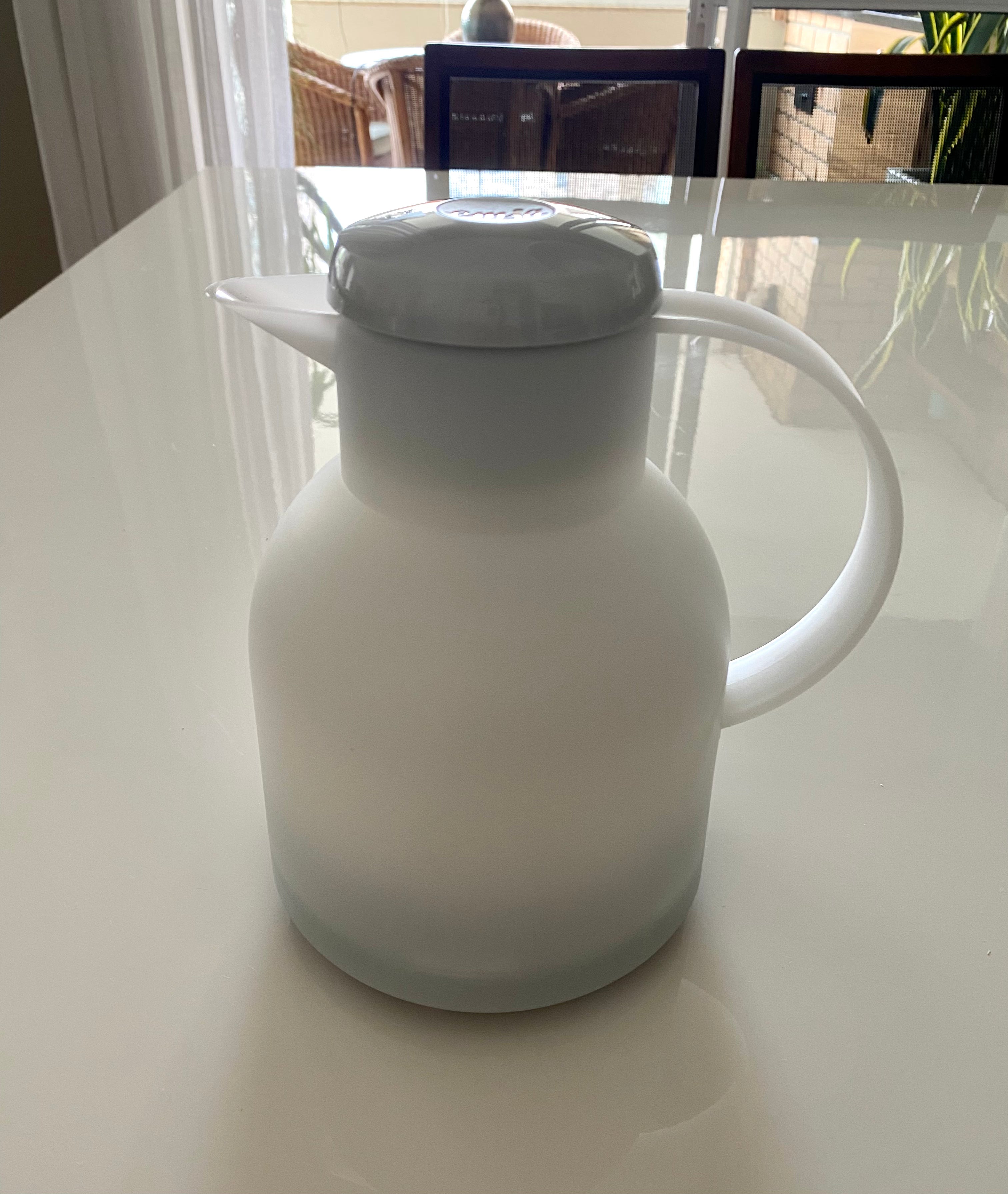Garrafa Térmica 1 L Branca Translúcida – Modelo Alemão Emsa Apresente bebidas quentes ou frias com elegância usando esta garrafa térmica 1 l branca de design alemão da marca Emsa....