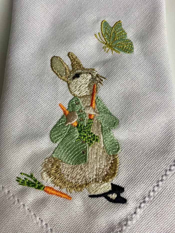 Com um gracioso coelho bordado em uma das laterais, o guardanapo branco em linho misto, vai fazer a diferença na mesa posta de Páscoa. Tem o barrado com acabamento em...