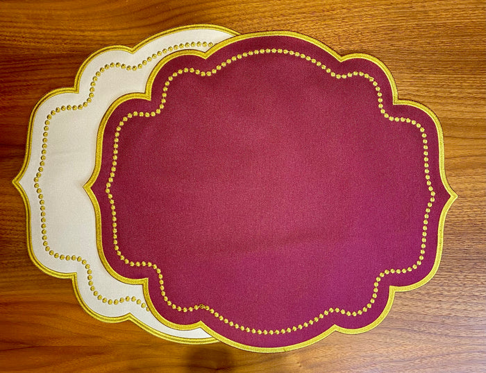 Nas cores marsala e palha este jogo americano dupla face traz um toque de elegância à decoração de mesa. Bordado em dourado, combina o visual neutro e atemporal da cor...