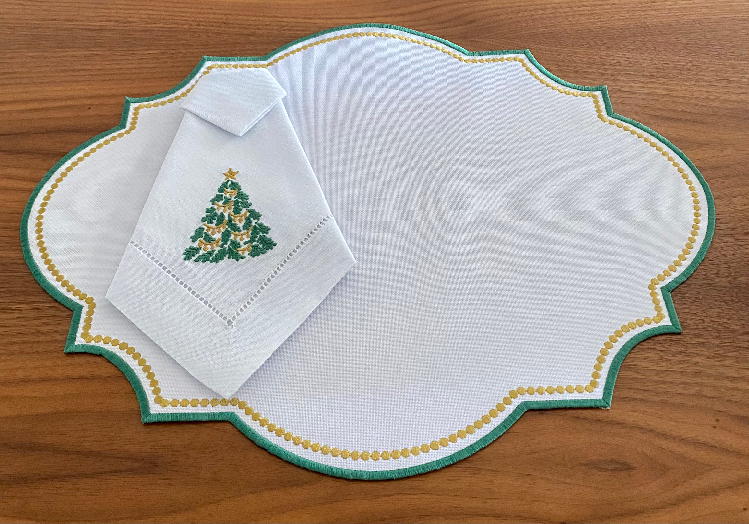 Jogo americano bordado em verde e dourado: prático e versátil para todas as ocasiões Jogo americano que atende do dia a dia às festas de final de ano. O jogo...