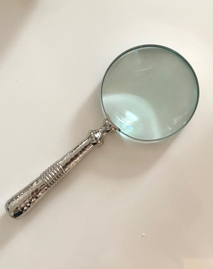 Para quem deseja adicionar um toque de intelectualidade a espaços como bibliotecas, escritórios, mesas de estudo ou onde haja muitos livros ou revistas, a lupa é o objeto ideal. É um objeto tradicional na decoração, mas que acrescenta charme e personalidade ao ambiente.