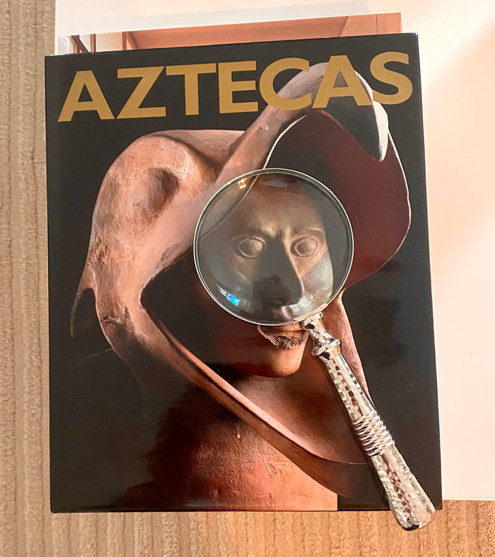 Posicionada sobre livros em uma mesa de centro do living, ela une elegância e utilidade prática, já que pode ser utilizada para observação de pequenos detalhes de uma obra.