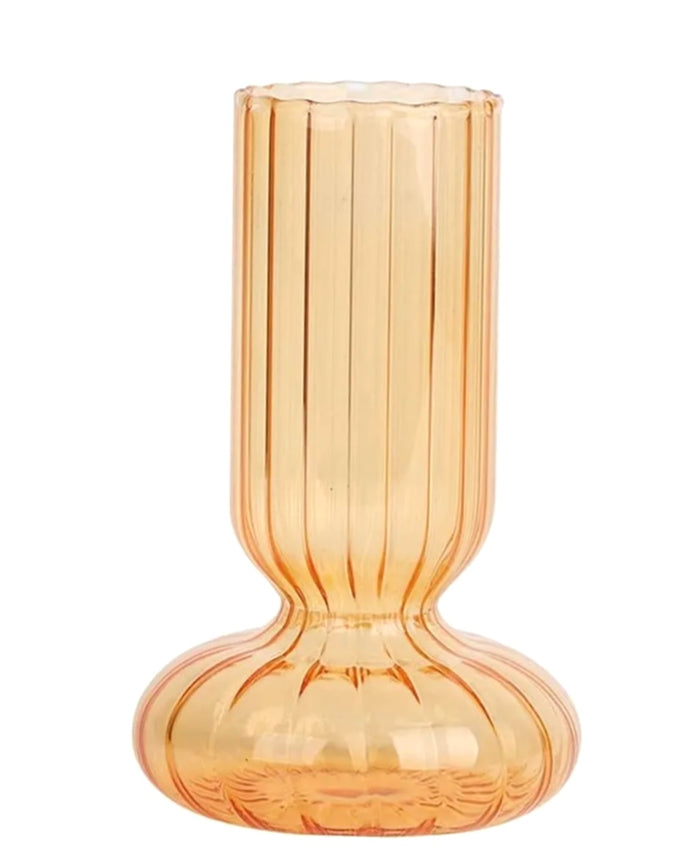 MINI VASO DE VIDRO CANELADO BASE BOJUDA, LARANJA