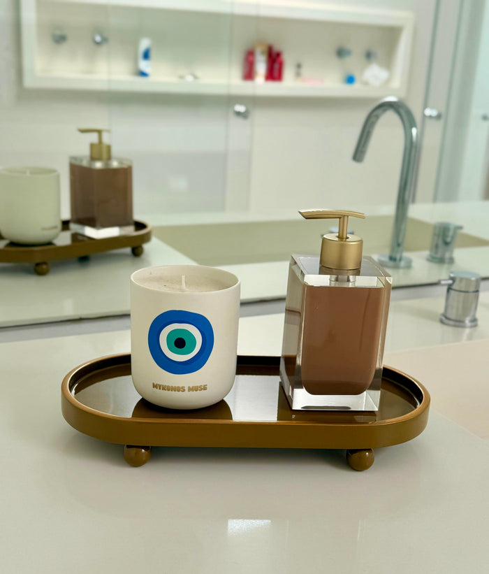 O porta sabonete líquido na cor bege escuro é a peça perfeita para dar o toque de elegância, praticidade e organização  na decoração do lavabo ou banheiro.  Feito com material...