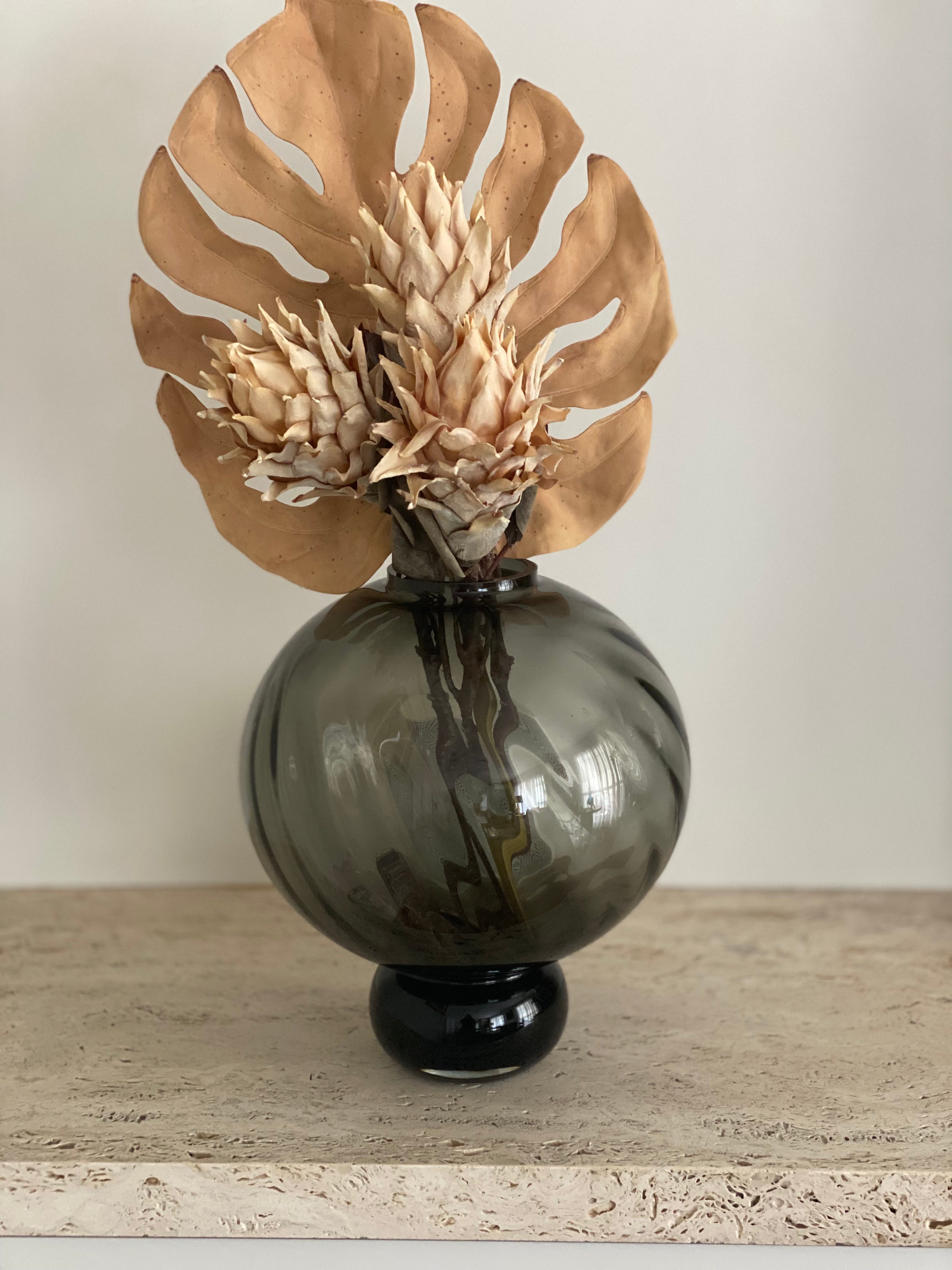 Vaso decorativo de vidro cinza 27 CM- design moderno e sofisticado Transforme sua casa com a sofisticação atemporal do vaso decorativo de vidro cinza. Peça de design contemporâneo que é um...